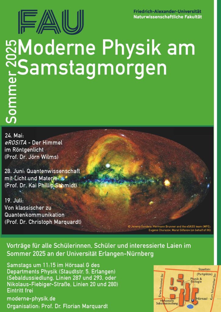 For the summer semester 2025, three talks of the „Modern physics on Saturday morning“ lecture series are scheduled. Two of…